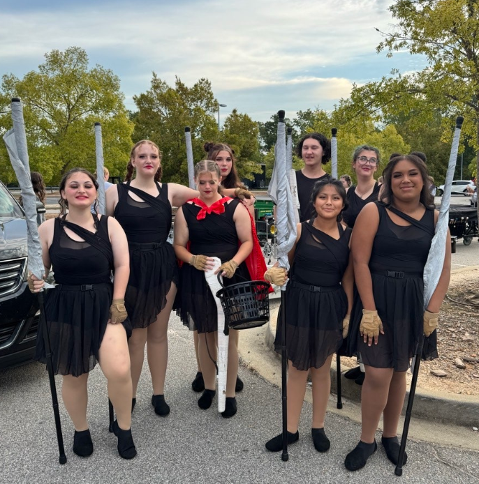 The Swansea High School Color Guard participates in two competitive seasons: the Marching Band and the Winter Guard. The marching band season starts with auditions in the spring and ends in November. Most of our basic flag, weapon, and dance training occurs during this season. We will also learn choreography for an eight-minute show performed during halftime at football games and marching band competitions. The guard performs alongside the marching band and provides a large portion of the visual aspect of the show.